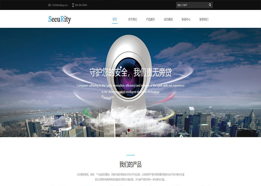 模板名稱:(帶手機(jī)版數(shù)據(jù)同步)自適應(yīng)安防監(jiān)控器材類藍(lán)色網(wǎng)站模板