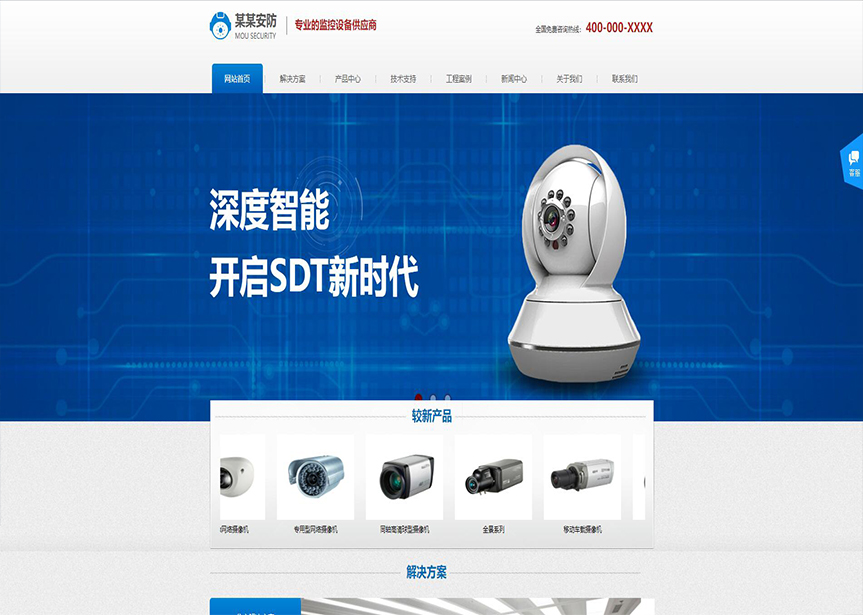 模板名稱:(帶手機(jī)版數(shù)據(jù)同步)自適應(yīng)安防監(jiān)控器材類藍(lán)色網(wǎng)站模板