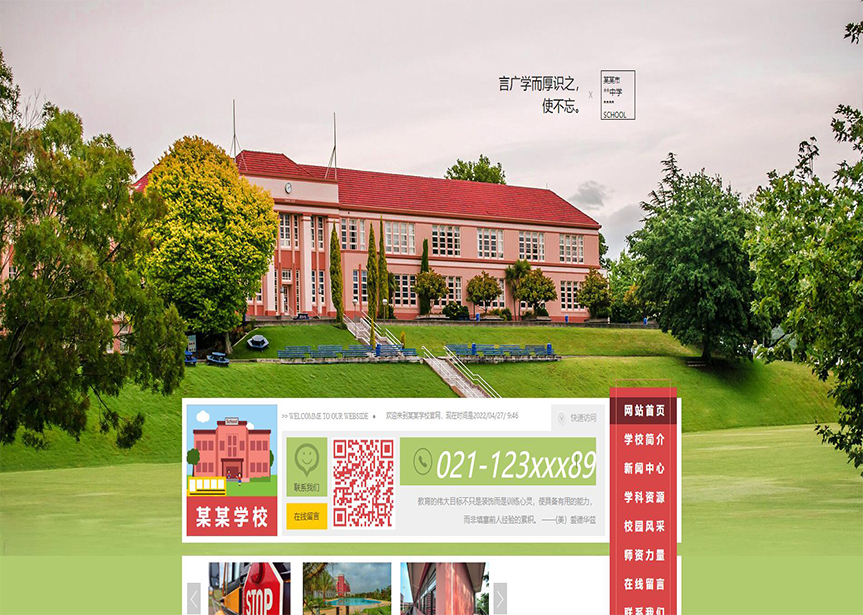 模板名稱:(帶手機版數(shù)據(jù)同步)自適應(yīng)學(xué)校類綠色網(wǎng)站模板