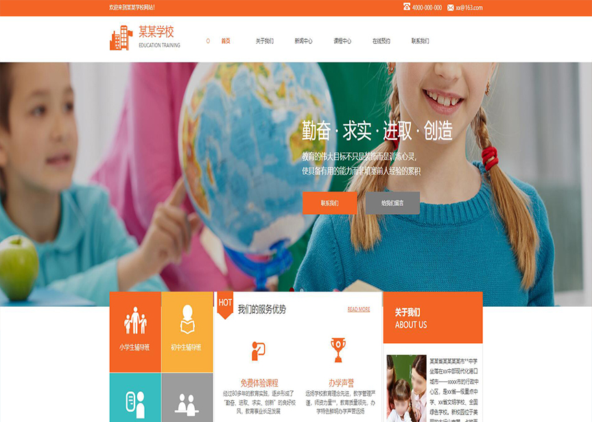 模板名稱:(帶手機版數(shù)據(jù)同步)自適應學校類橙色通用網站模板