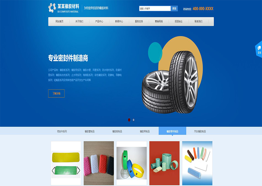 模板名稱:(帶手機(jī)版數(shù)據(jù)同步)自適應(yīng)橡膠材料藍(lán)色網(wǎng)站模板