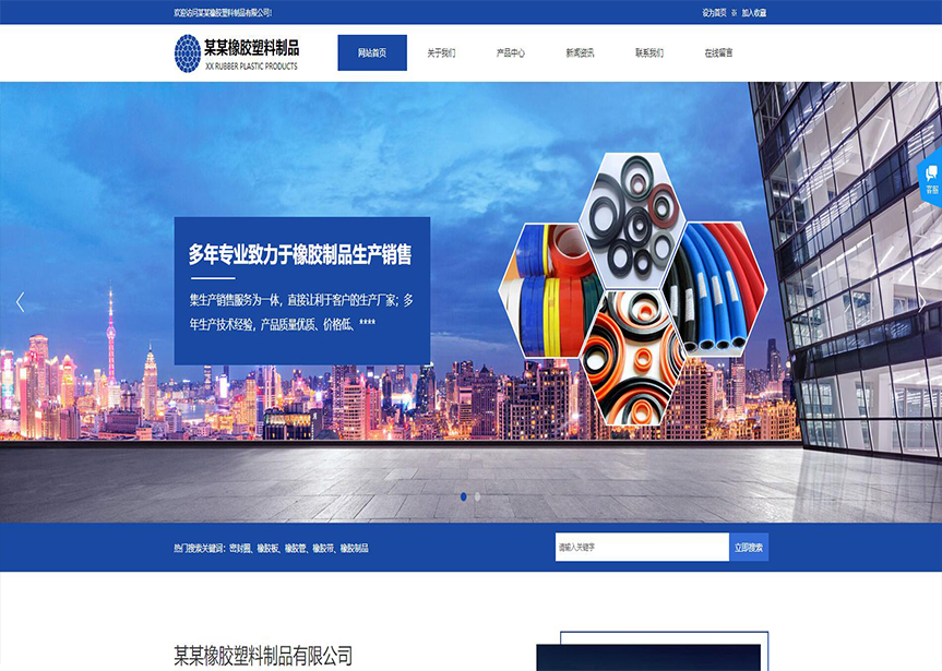 模板名稱:(帶手機(jī)版數(shù)據(jù)同步)自適應(yīng)橡膠塑料制品藍(lán)色網(wǎng)站模板