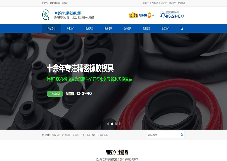 模板名稱:(帶手機版數據同步)自適應橡膠模具中英文網站模板