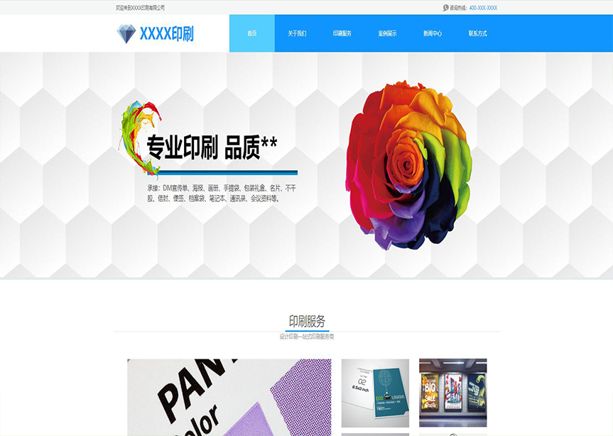 模板名稱:(帶手機版數(shù)據(jù)同步)自適應(yīng)印刷包裝類藍色通用網(wǎng)站模板
