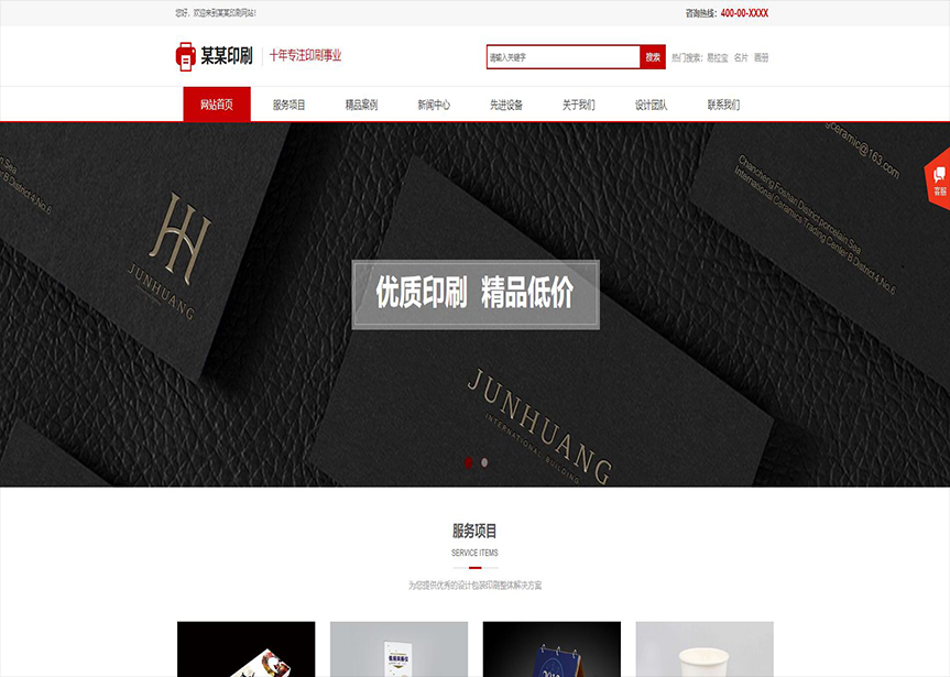 模板名稱:(帶手機(jī)版數(shù)據(jù)同步)自適應(yīng)印刷包裝類紅色通用網(wǎng)站模板