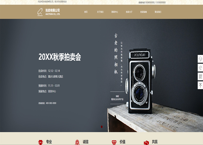 模板名稱:(帶手機版數(shù)據(jù)同步)自適應(yīng)拍賣典當(dāng)類褐色通用網(wǎng)站模板