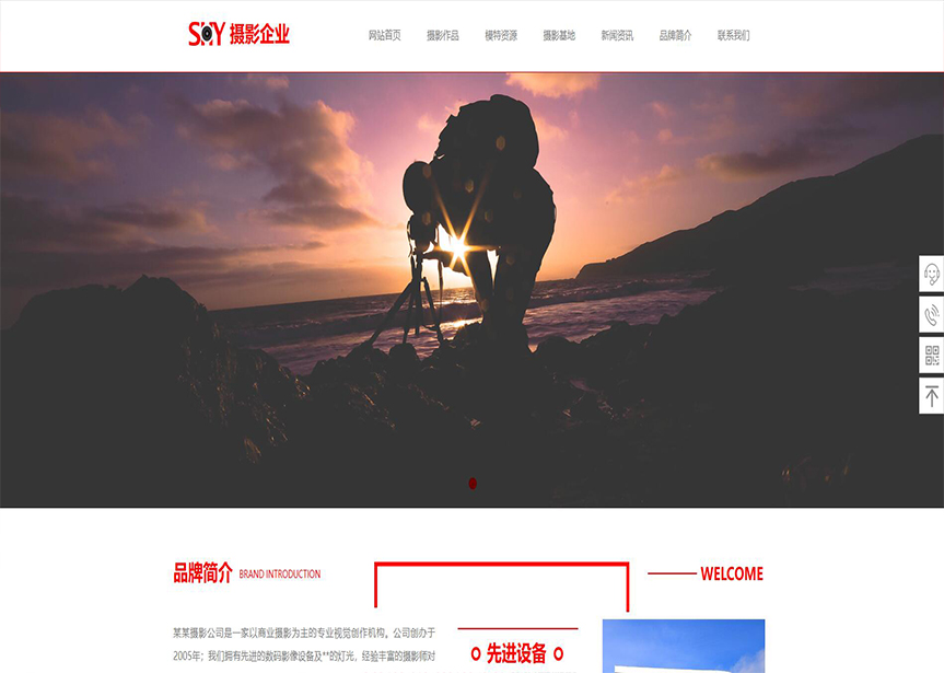模板名稱:(帶手機(jī)版數(shù)據(jù)同步)自適應(yīng)攝影沖印類攝影企業(yè)網(wǎng)站模板