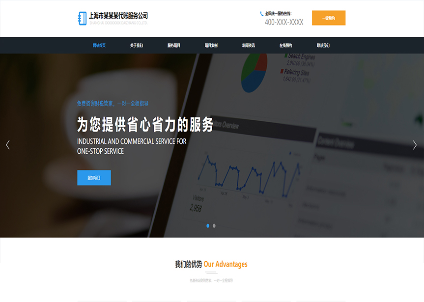 模板名稱:(帶手機版數據同步)自適應商業(yè)類財務報稅網站模板
