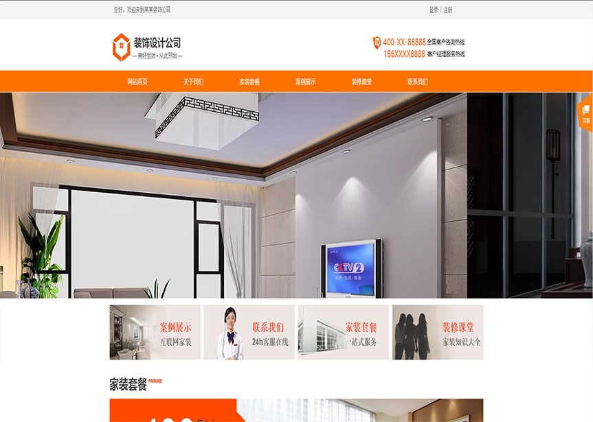 模板名稱:(帶手機版數(shù)據(jù)同步)自適應(yīng)設(shè)計裝飾類橙色通用網(wǎng)站模板