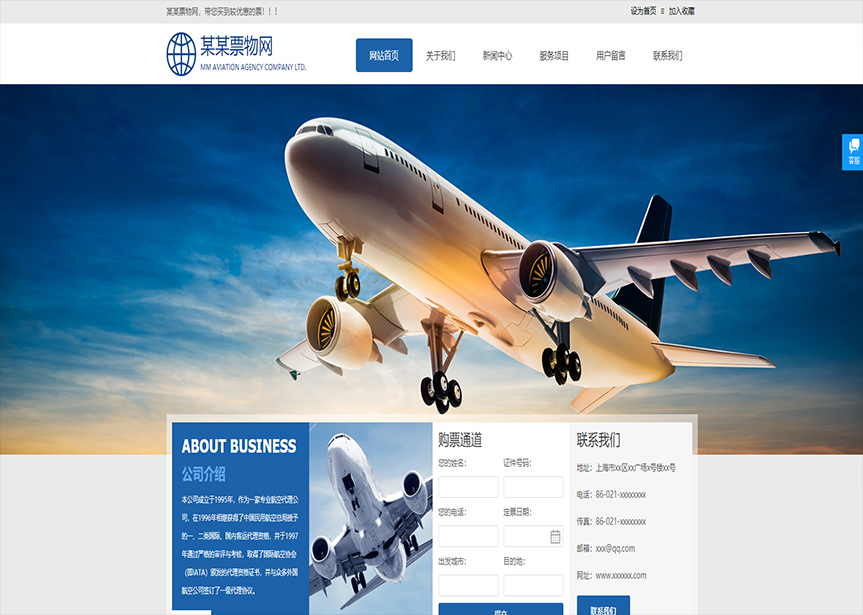 模板名稱:(帶手機(jī)版數(shù)據(jù)同步)自適應(yīng)票務(wù)類藍(lán)色通用網(wǎng)站模板