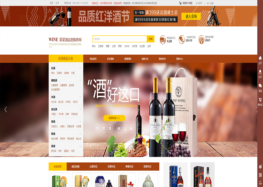 模板名稱:(帶手機(jī)版數(shù)據(jù)同步)自適應(yīng)商城類酒品通用網(wǎng)站模板