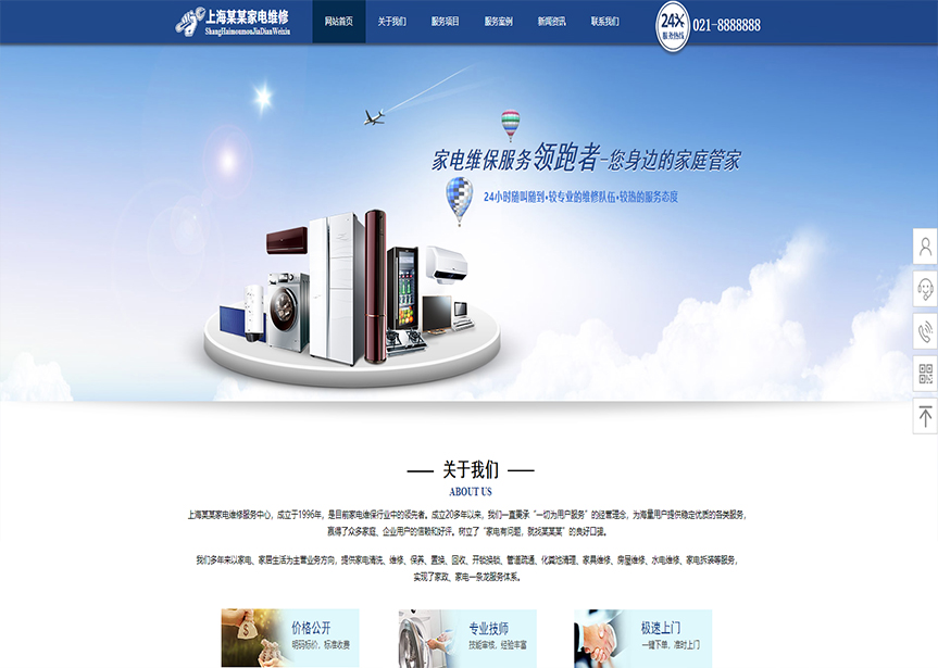 模板名稱:(帶手機(jī)版數(shù)據(jù)同步)自適應(yīng)其他類家電維修通用網(wǎng)站模板