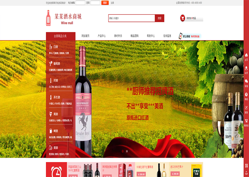模板名稱:(帶手機版數(shù)據(jù)同步)自適應商城類酒水商城通用網站模板