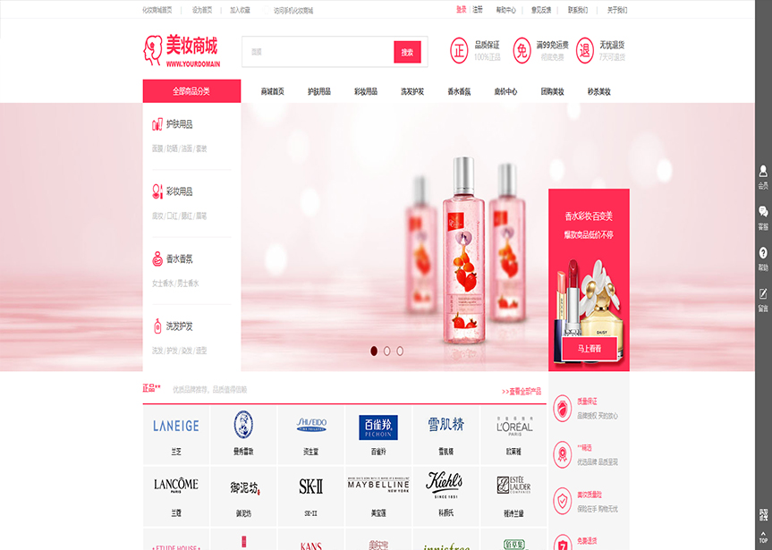 模板名稱:(帶手機版數(shù)據(jù)同步)自適應(yīng)商城類美妝商城通用網(wǎng)站模板