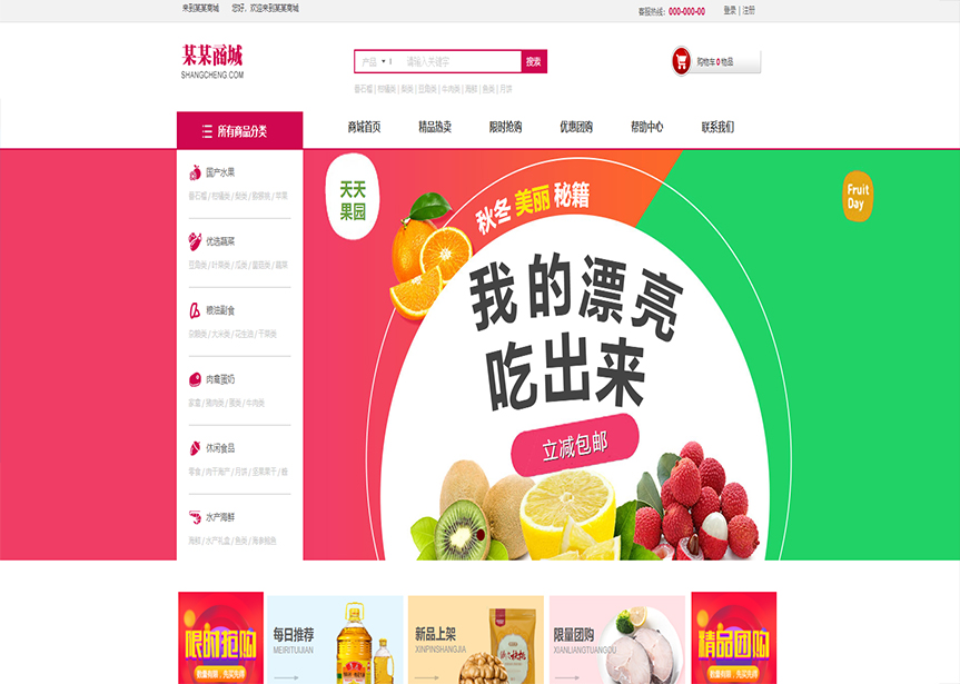模板名稱(chēng):(帶手機(jī)版數(shù)據(jù)同步)自適應(yīng)商城類(lèi)生鮮商城通用網(wǎng)站模板