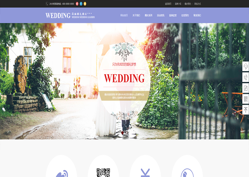 網站模板名稱:(帶手機版數據同步)自適應婚禮婚慶類通用網站模板