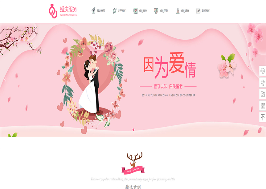 網(wǎng)站模板名稱:(帶手機(jī)版數(shù)據(jù)同步)自適應(yīng)婚禮婚慶類粉色通用網(wǎng)站模板