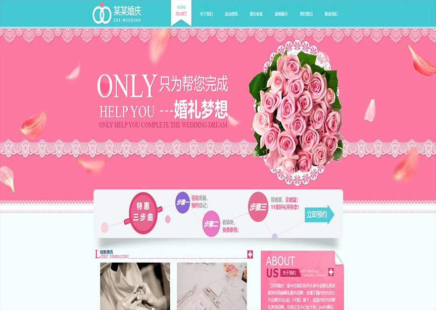 網(wǎng)站模板名稱:(帶手機(jī)版數(shù)據(jù)同步)自適應(yīng)婚禮婚慶類粉色網(wǎng)站模板