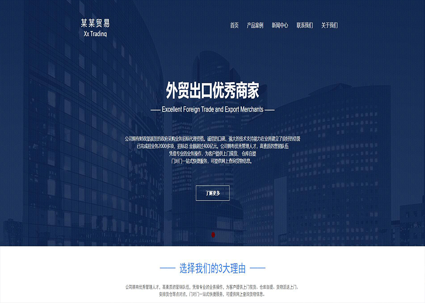 網站模板名稱:(帶手機版數據同步)自適應貿易出口類通用網站模板