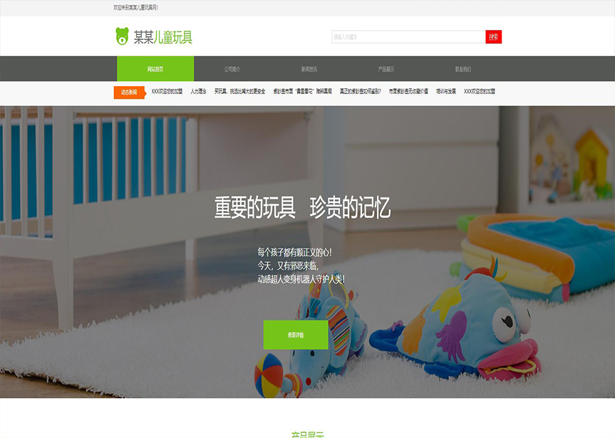 模板名稱:(帶手機版數據同步)自適應玩具類綠色網站模板