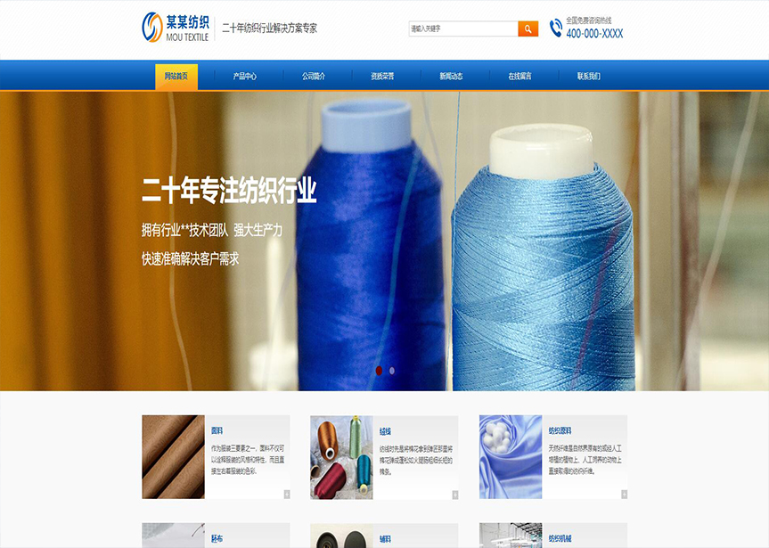 模板名稱:(帶手機(jī)版數(shù)據(jù)同步)自適應(yīng)紡織類(lèi)藍(lán)色網(wǎng)站模板