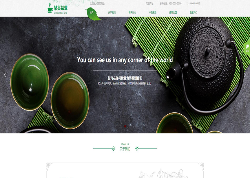 模板名稱:(帶手機(jī)版數(shù)據(jù)同步)自適應(yīng)茶葉類綠色網(wǎng)站模板