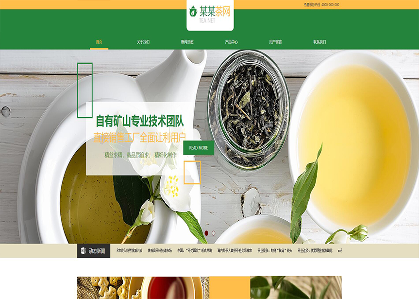 模板名稱:(帶手機(jī)版數(shù)據(jù)同步)自適應(yīng)茶葉類黃綠色網(wǎng)站模板