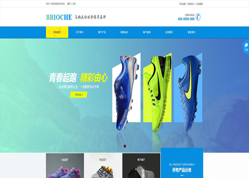 模板名稱(chēng):(帶手機(jī)版數(shù)據(jù)同步)自適應(yīng)鞋帽類(lèi)藍(lán)色網(wǎng)站模板
