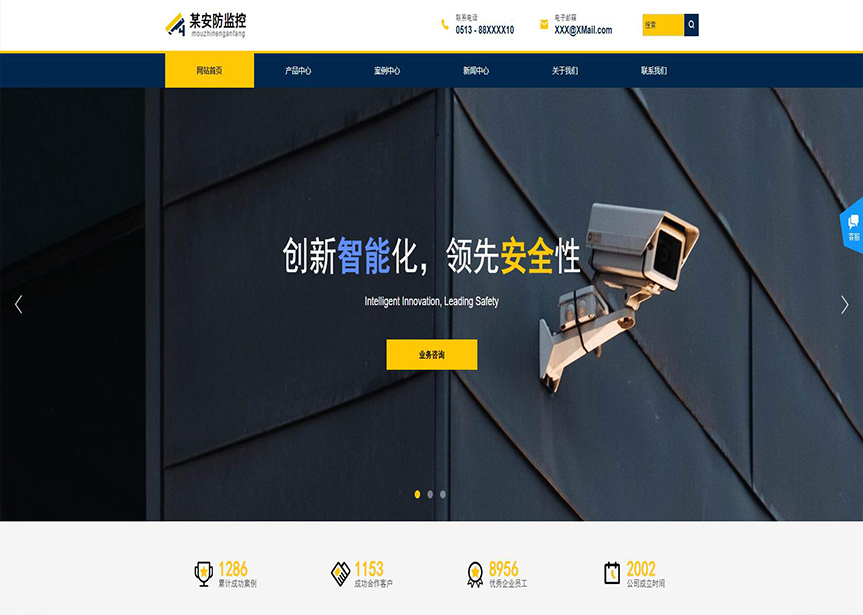 模板名稱:(帶手機版數(shù)據(jù)同步)自適應(yīng)安防監(jiān)控器材類黃色網(wǎng)站模板