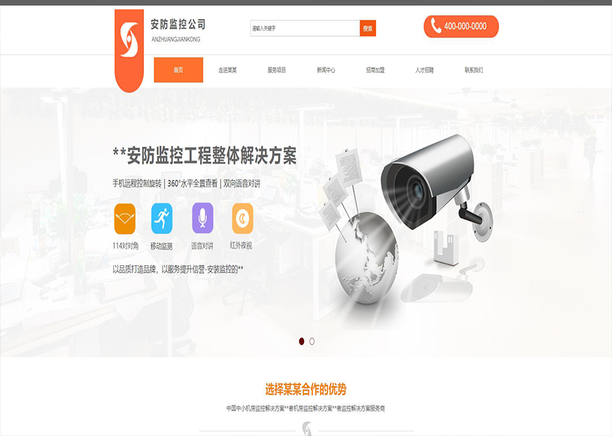 模板名稱:(帶手機版數(shù)據(jù)同步)自適應(yīng)安防監(jiān)控器材類橙色網(wǎng)站模板