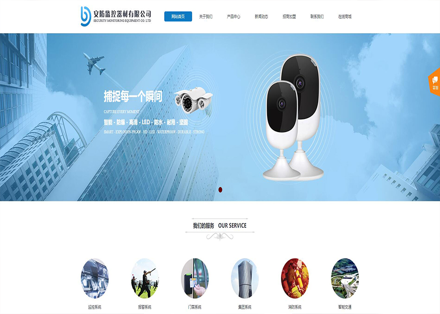 模板名稱:(帶手機(jī)版數(shù)據(jù)同步)自適應(yīng)安防監(jiān)控器材類藍(lán)色網(wǎng)站模板