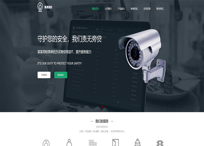 模板名稱:(帶手機版數據同步)自適應安防監(jiān)控器材類綠色網站模板