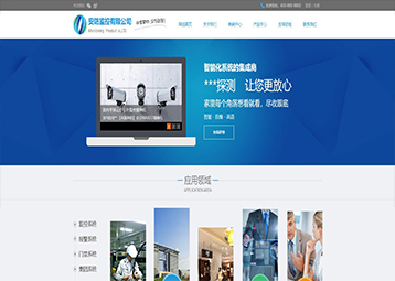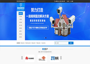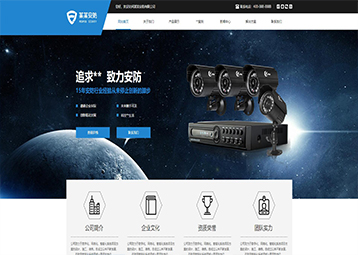 (帶手機(jī)版數(shù)據(jù)同步)自適應(yīng)安防監(jiān)控器材類藍(lán)色網(wǎng)站模板